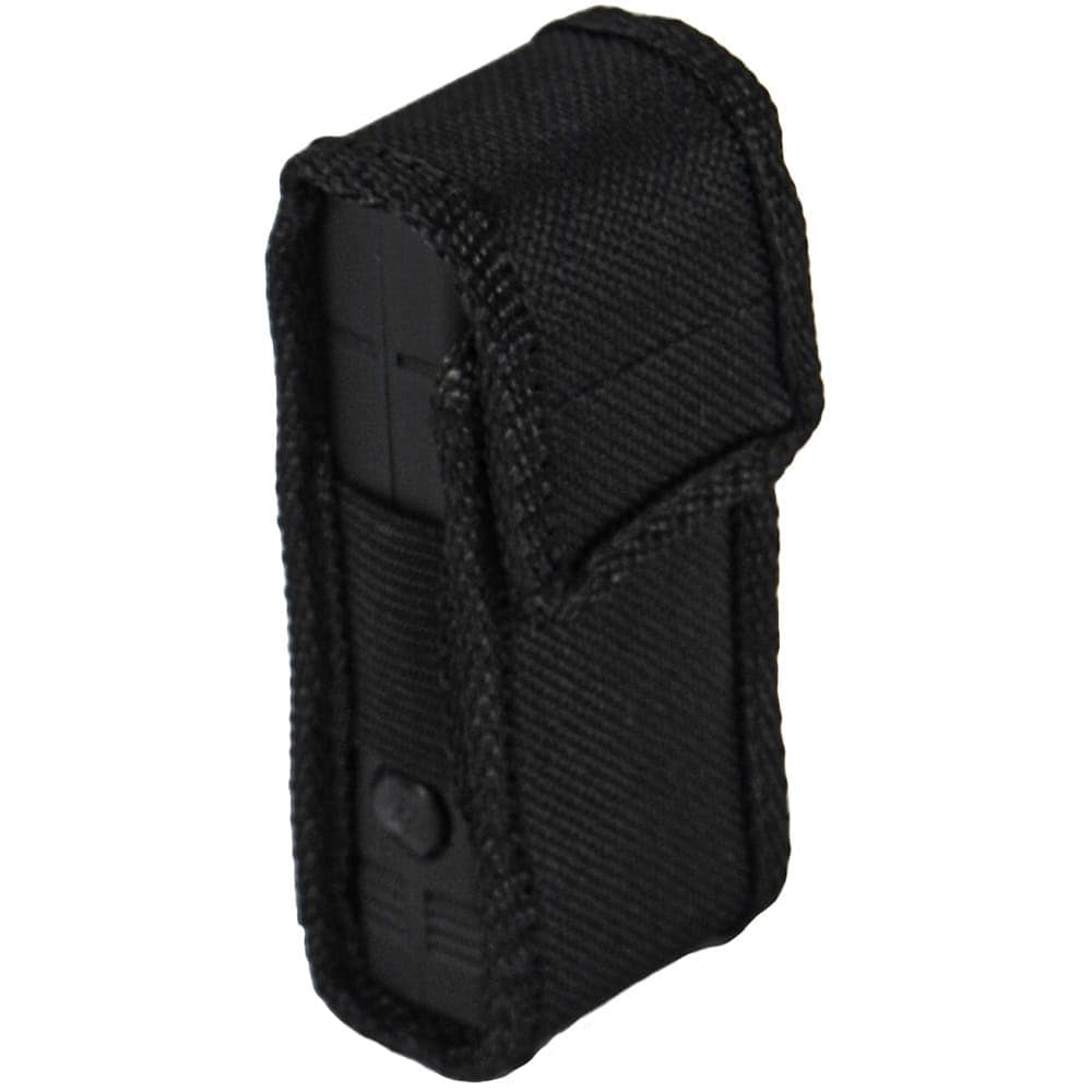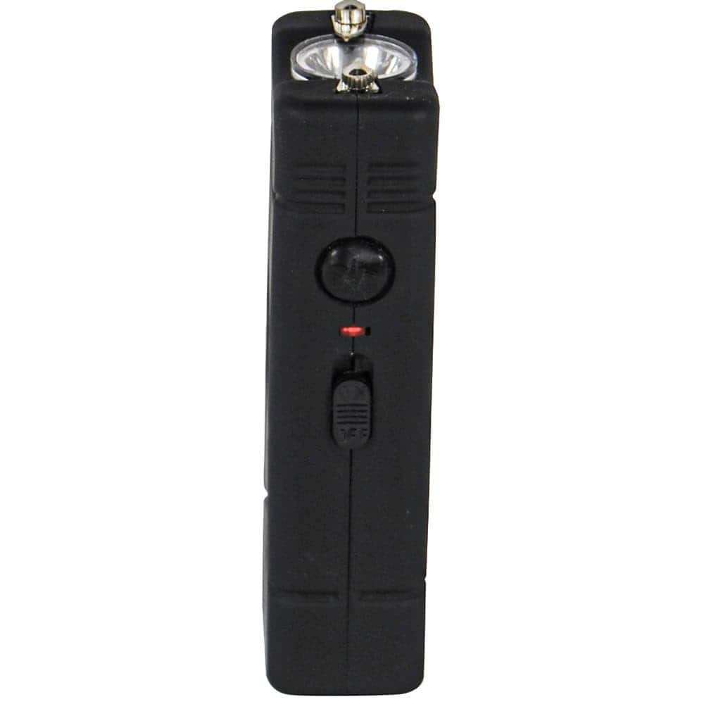 Lil Guy 60,000,000 volts Stun Gun W/flashlight and Nylon Holster. This little stun gun is small and compact with 4.4 milliamps depending on the freshness of the batteries. It has a super bright, 100 Lumen, LED flashlight built in charger and comes with a nylon case. It measures only 3 3⁄4" x 1 1⁄2" x 3⁄4". The safety switch is off when in the down position, middle position is the super bright LED flashlight, and in the up position the shock is turned on once the trigger is pressed.